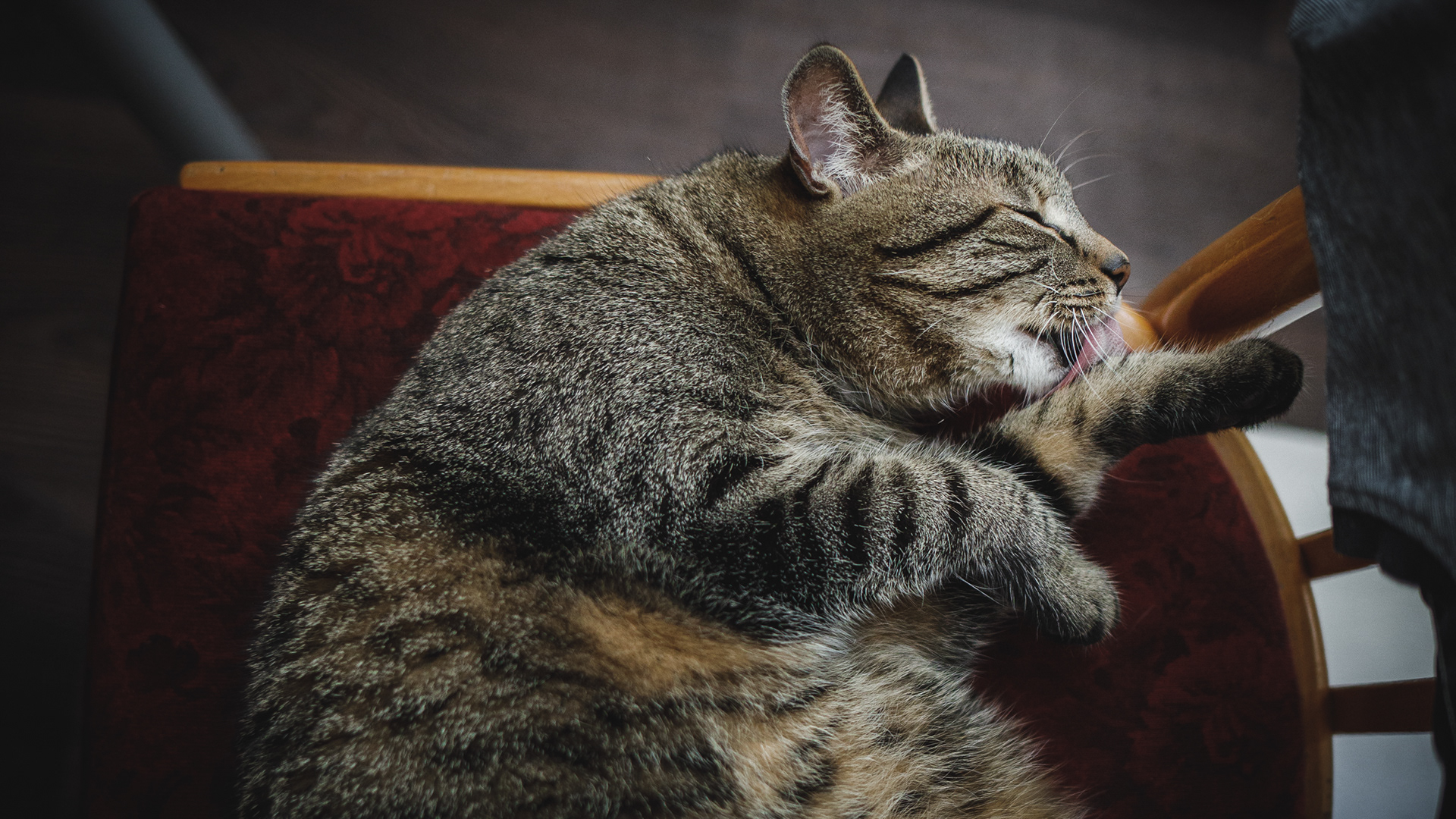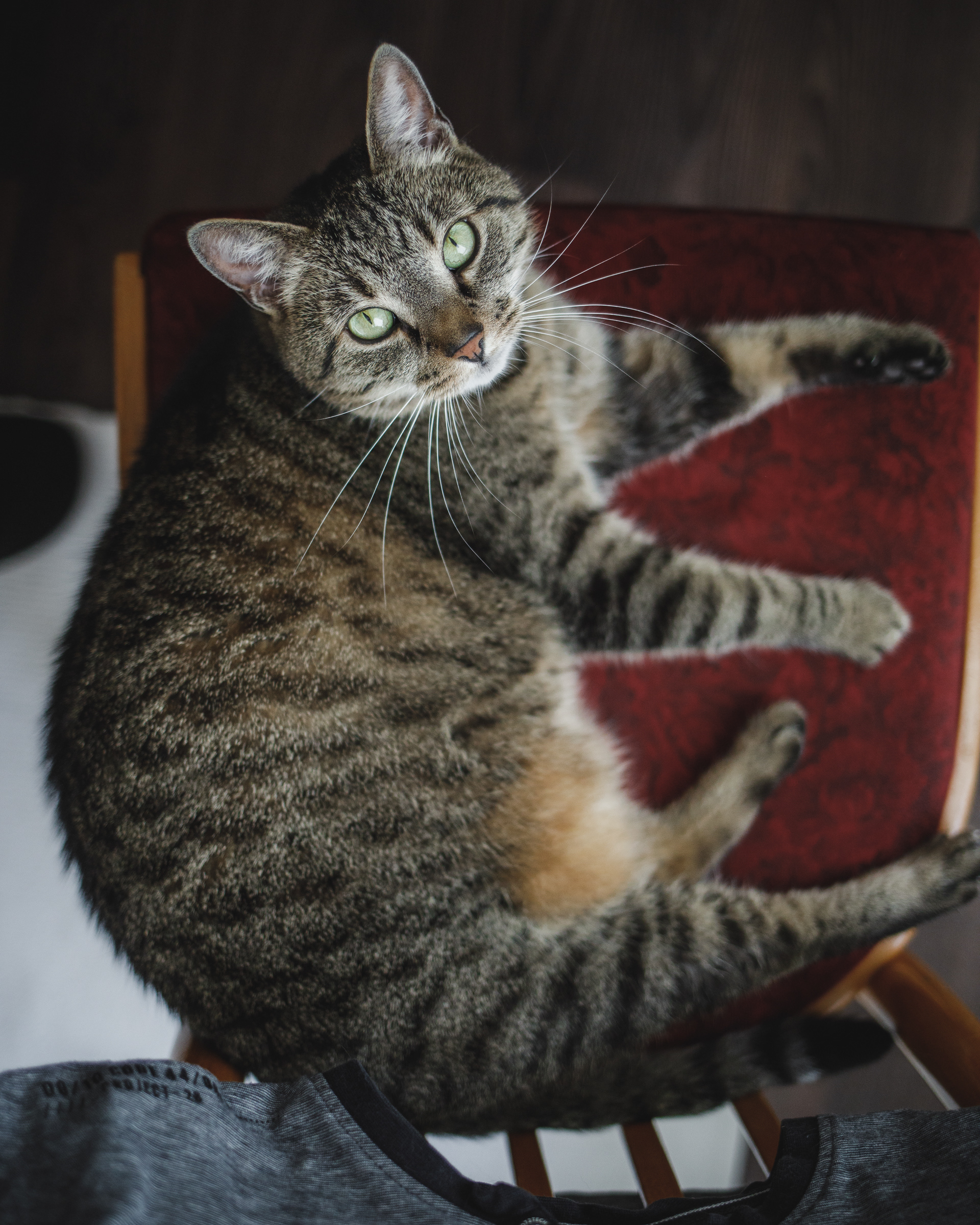 Ow, he is working from home.. so I help him and warm her's chair ^-^